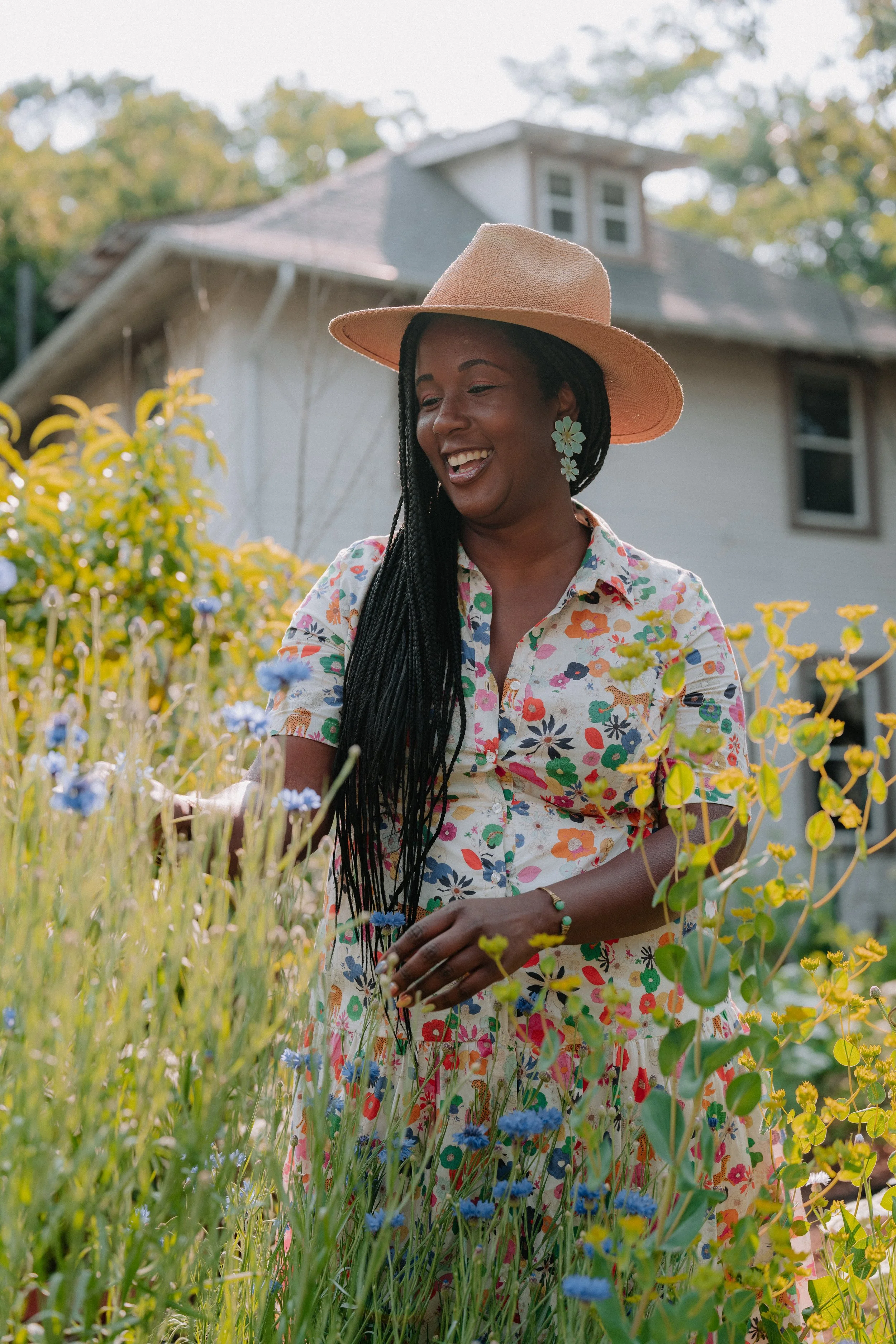 Some of her earliest memories are of her grandmother's garden in St. Lucia, surrounded by orchids, anthuriums, and night-blooming cacti. Growing up across from Brooklyn Botanic Garden deepened her connection to plants and place. When she moved to Norfolk in 2018 and couldn't find locally-grown, sustainable flowers for her own wedding, she started growing them herself.